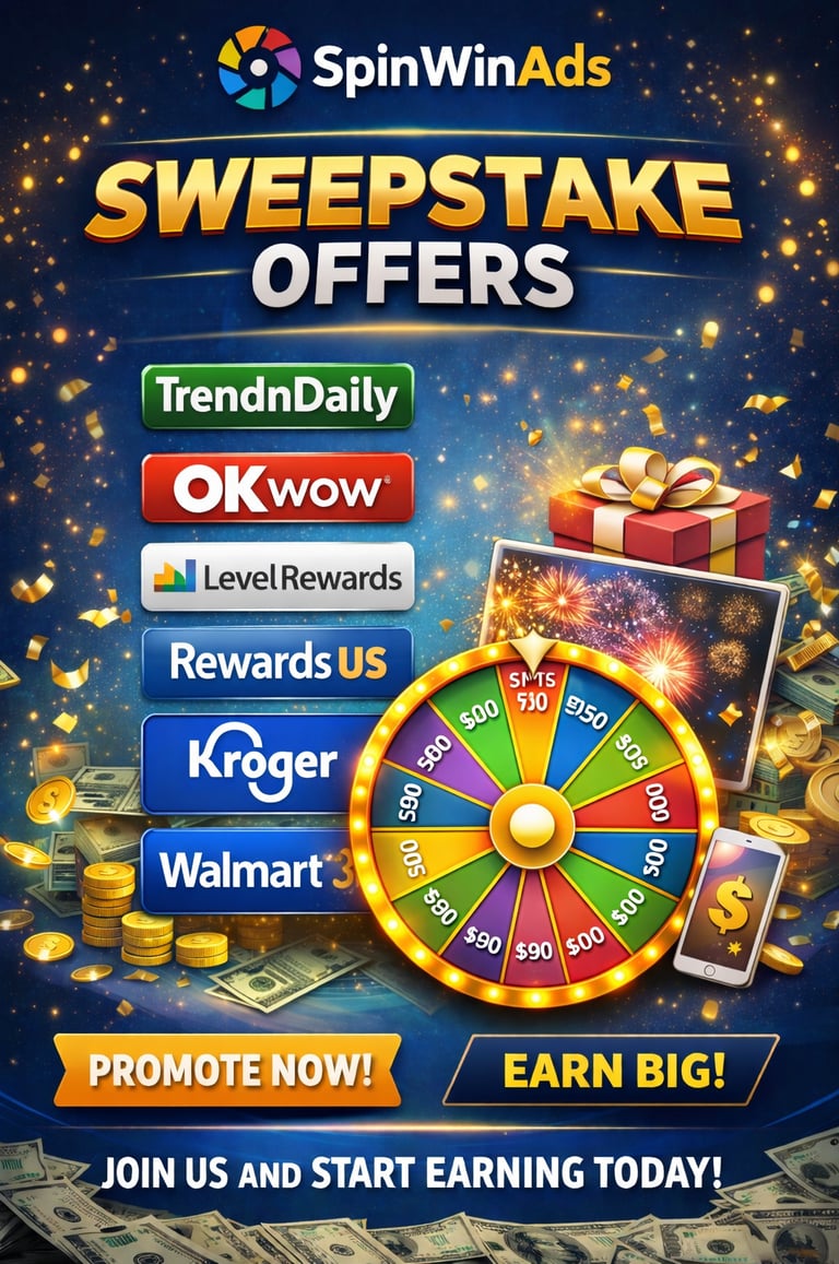 SpinWinAds is a global affiliate network offering high-converting Sweepstakes and Finance CPL offers with fast approvals, reliable tracking, and competitive payouts for affiliates.